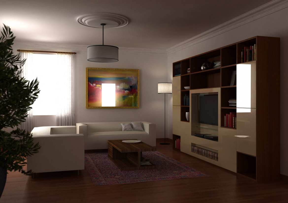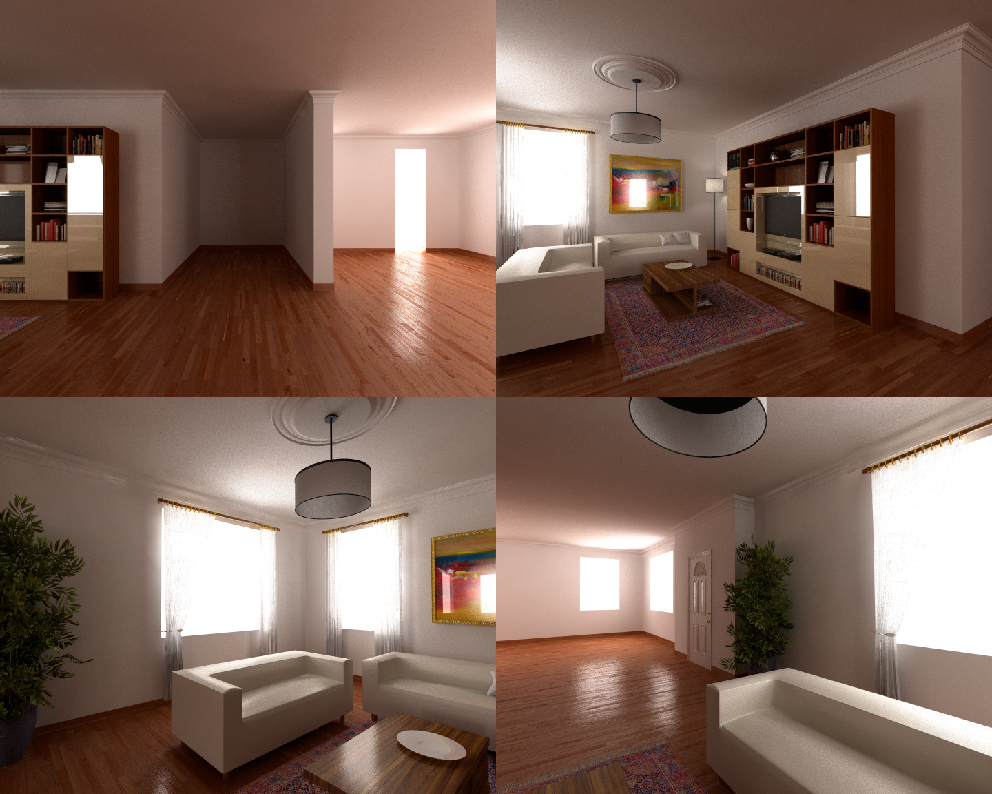 prima di procedere con la modellazione degli altri ambienti (cucina e sala da pranzo) posto degli screenshot di quanto renderizzato fin' ora ...