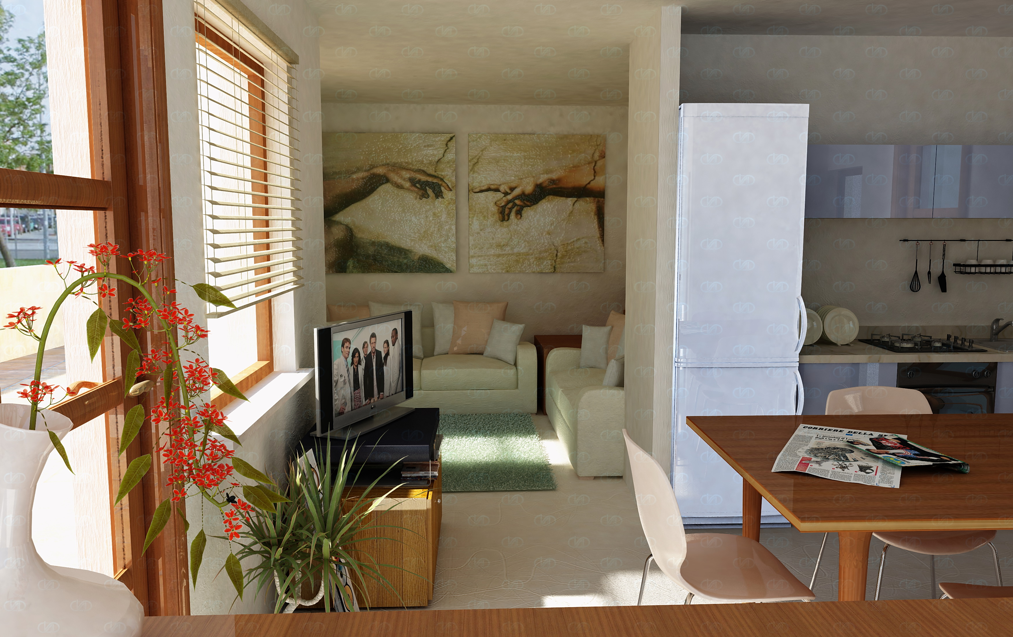 si ha due luci area..impostate con il valore 6..ora vedo se avrò tempo cercherò di migliorarlo...ma il cliente mi sa ha che ha gradito e aquisterà l appartamento ..di conseguenza credo verra lasciato ai posteri hehehehe