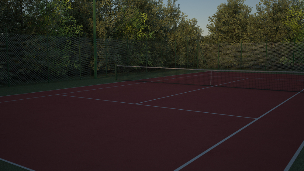 Non conosco lo scopo di questo render ma se vuoi dare un maggior tocco di realismo, già di per sè molto alto, aggiungi un paio di panchine, un frigo e una manciata di palline da tennis sparse qua e là!