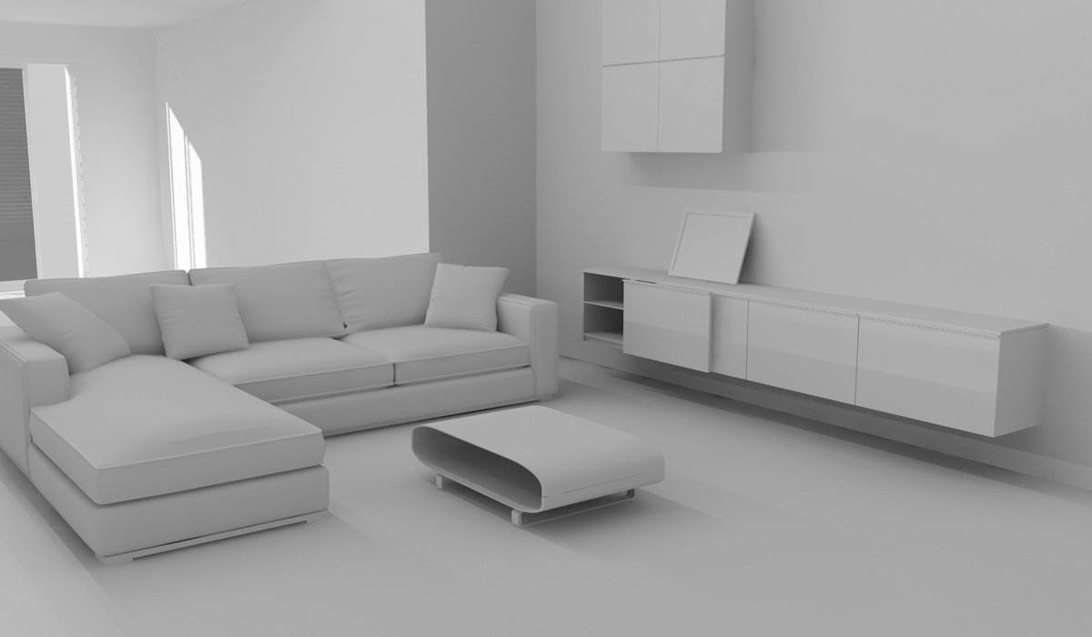 Pian piano sta uscendo qualcosa che nemmeno mi aspettavo, grazie filippo, non ci avevo proprio pensato a dare un po di riflessione al muro. Per la riflessione ho usato i parametri intensità 30% e offuscamento 10% come mi avevi suggerito, a colpo d'occhio si nota subito dietro la tv. che dici è troppa la riflessione o va bene?