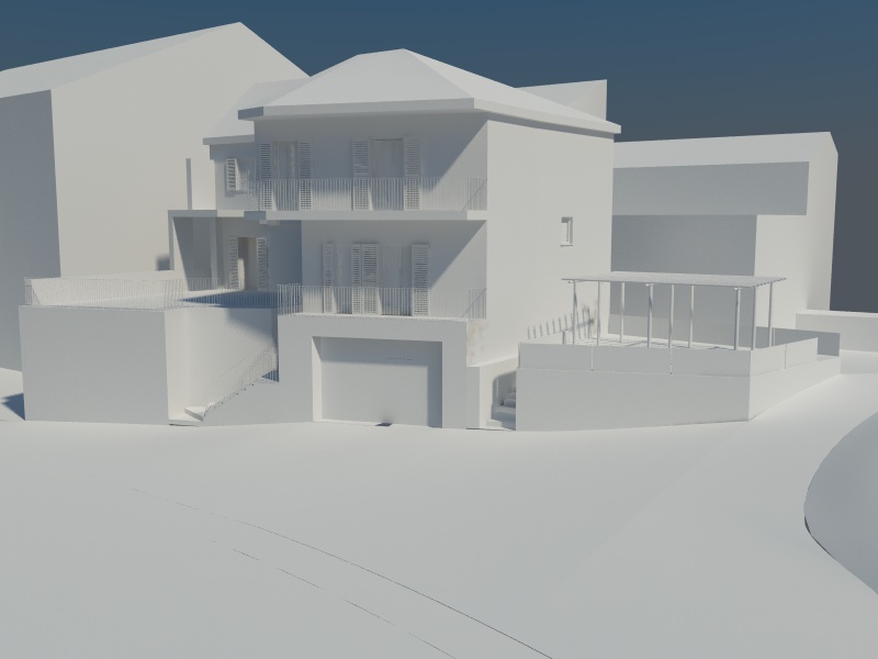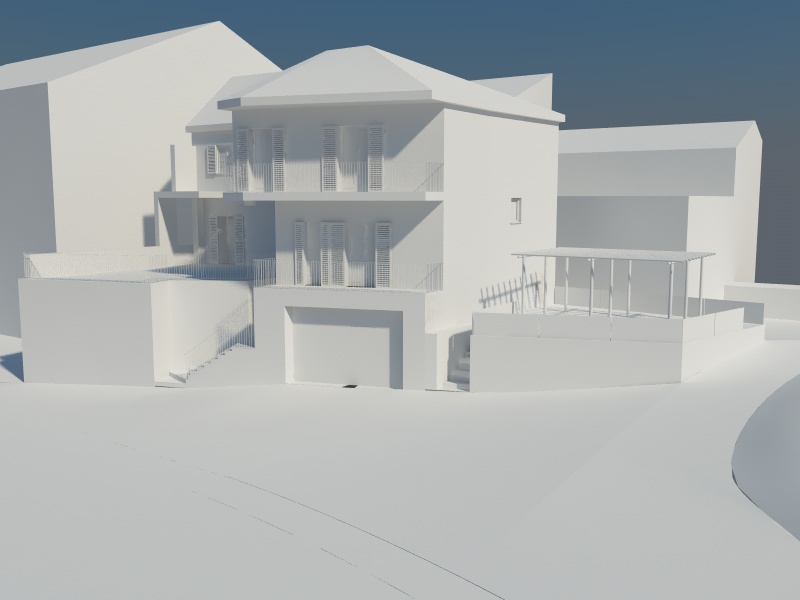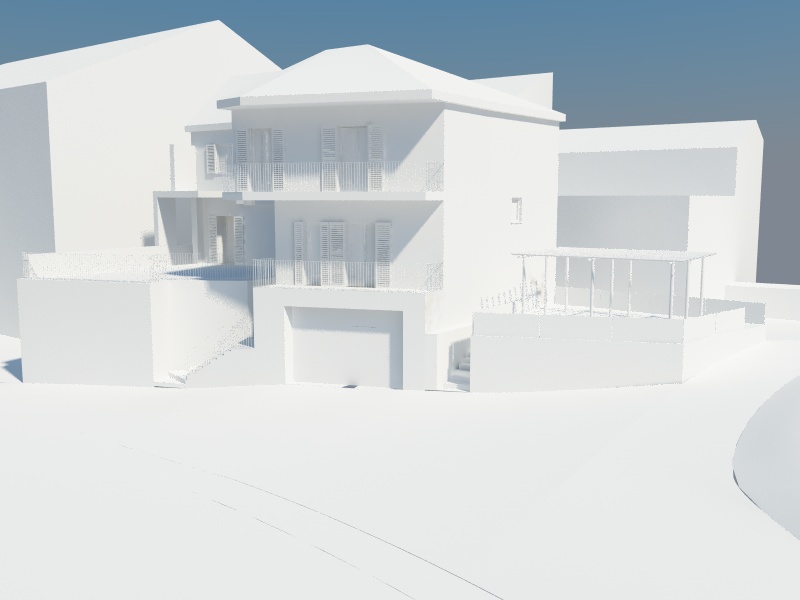 Poi, ma questa è sempre una mia opinione, sposterei il sole in modo che la facciata principale sia un pò più ombreggiata ..... comunque vedì tu, solo perchè così come ora sembra che non ci siano ombre... :D