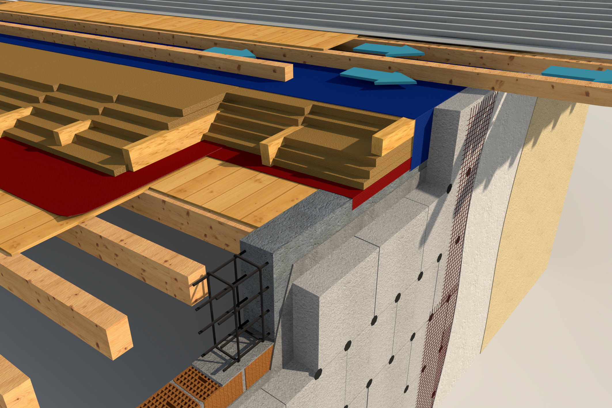 se vedi il particolare 3d che è meglio di qualunque altro disegno, nota come la fibra di legno sulla copertura si collega al cappotto della parete senza creare ponti termici. inoltre questa tipologia di copertura non veniva nemmeno usata da casa clima e il primo tetto fatto così è stato un successo, oltre ad aver ridotto i costi del 5%. :D