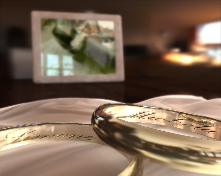 un po' di sfocatura senza dubbio concentra l'attenzione sugli anelli, pero' visto che i due oggetti non sono molto lontani, io la farei molto leggera.