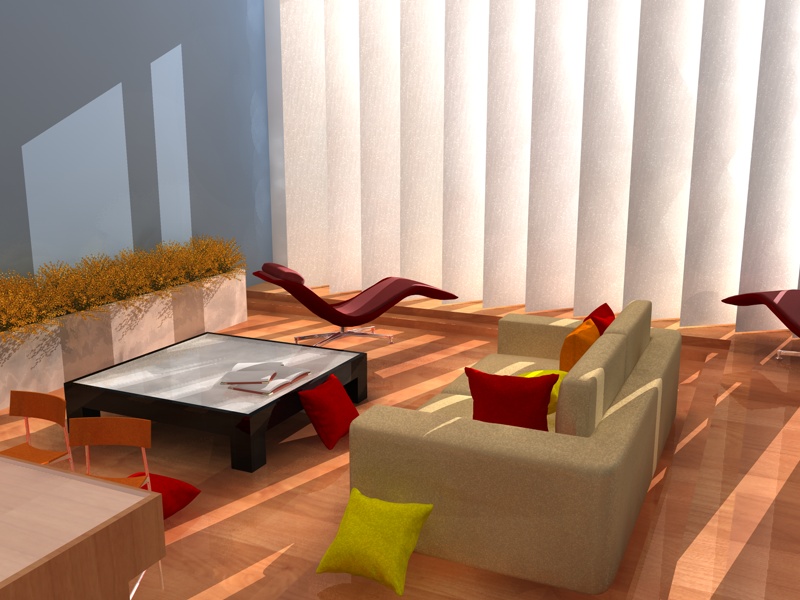 E' sempre tutto troppo saturo, i colori sono troppo accesi, e se noti il divano viene macchiato dai cuscini, fai un pò di prove veloci modificando i valori di saturazione e genera ig nel canale illuminazione dei vari materiali.