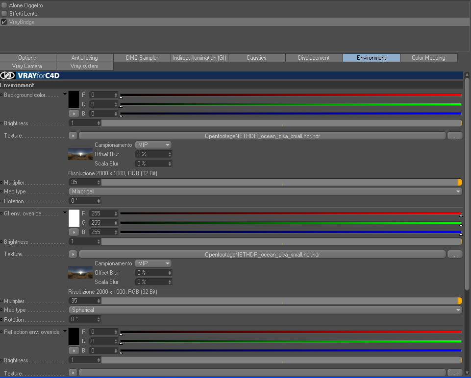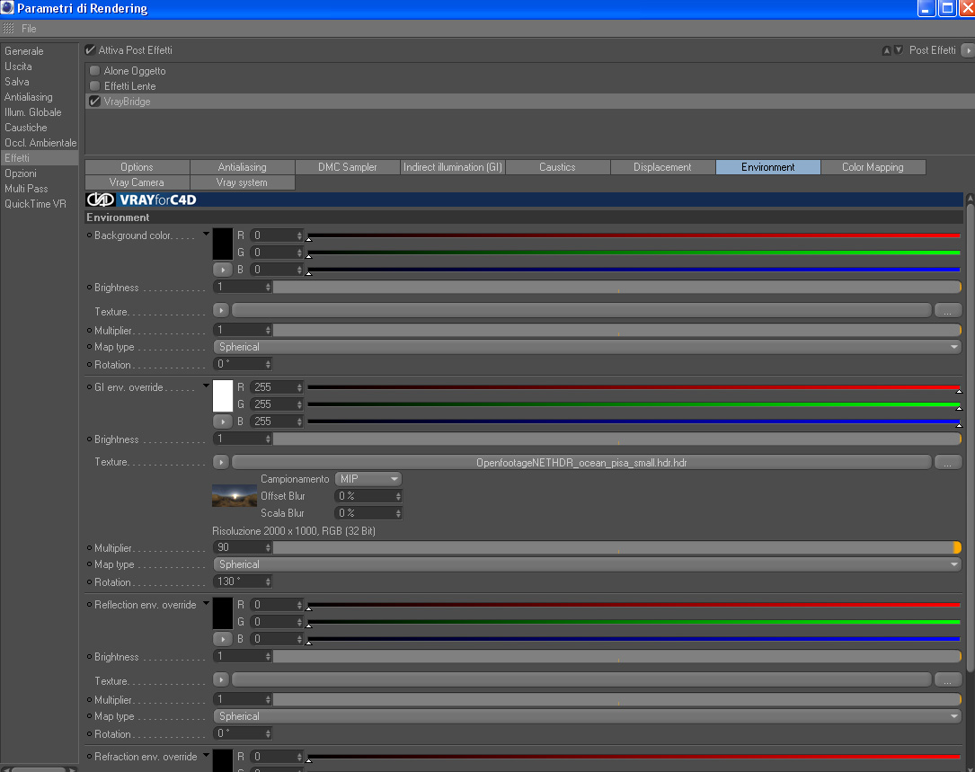 le mie impostazioni sono.. parametri irc lc medium e la prima hdri che ho trovato nell'hard disk nel canale GI environment multpl. 1