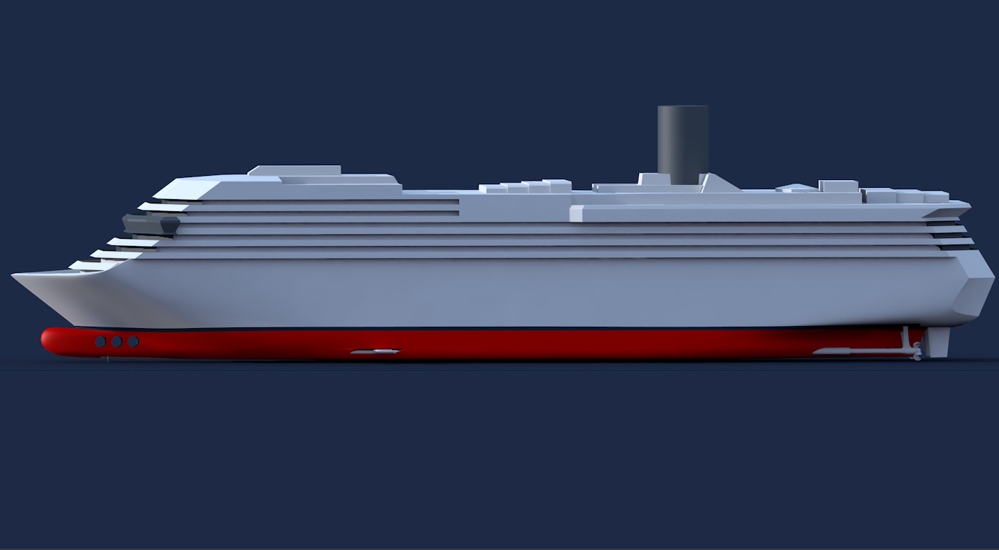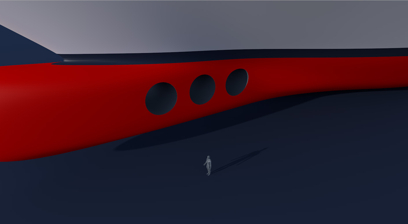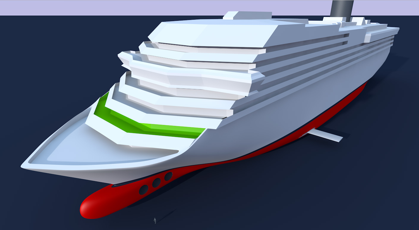 Tornerò sulle parti superiori più in là, ora continuerò la chiglia sotto la linea di galleggiamento, per posizionare le eliche di manovra e rifinire i timoni