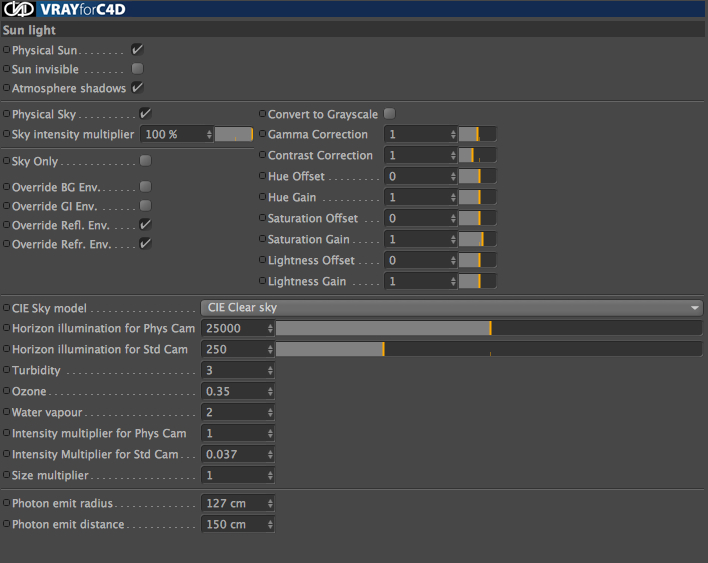 Ecco qualche schermata delle impostazioni. La scena è illuminata con un classico Phisycal Sun e Sky!
