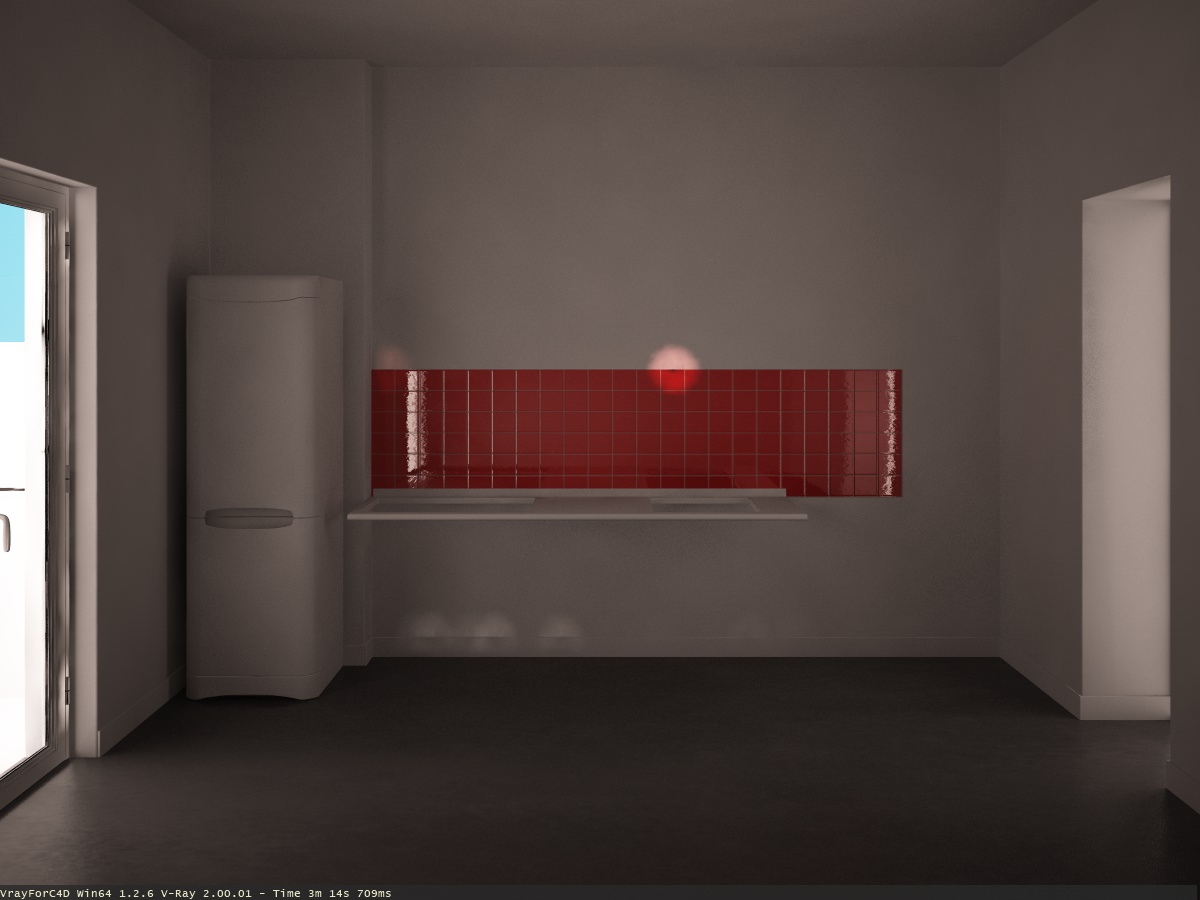 forse hai il bianco troppo sparato o altro ma cosi ad occhio le ombre le vedo poco marcate, guarda invece gli angoli dei muri in questo render veloce a impostazioni bassissime e AO disattivata