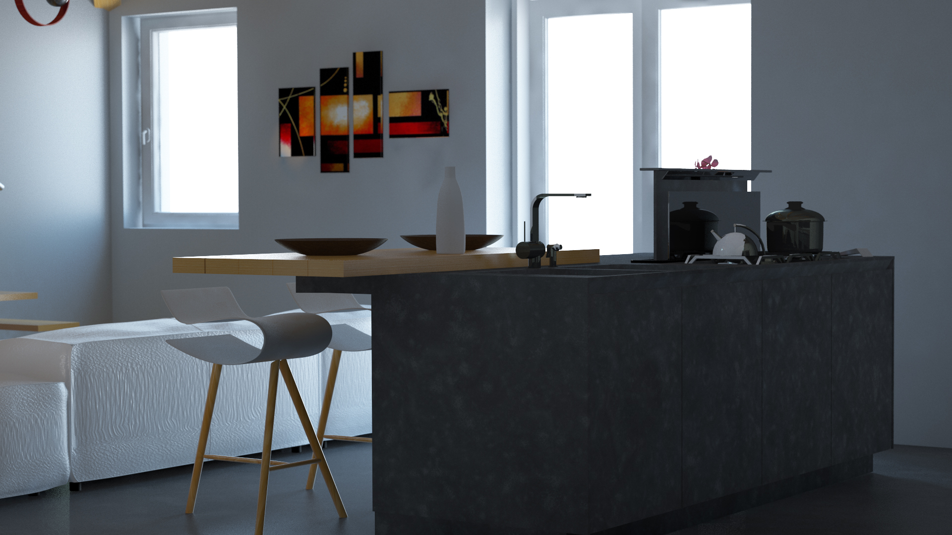 Premettendo che un'aggiustatina alle luci va fatta(quasi buio totale nella aprte destra dell'immagine, isola della cucina)