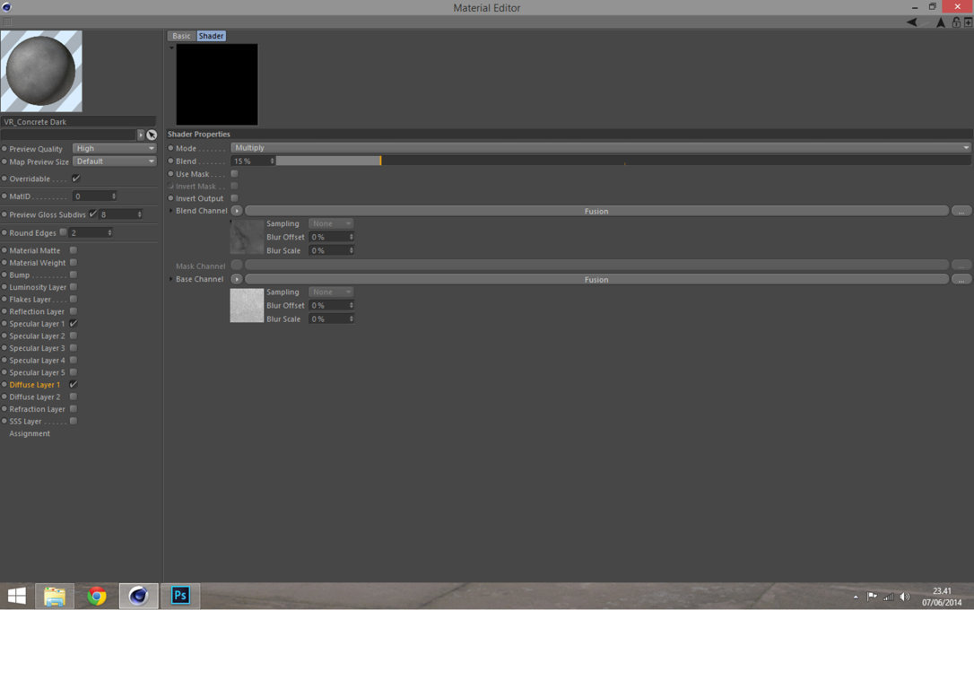 Il diffuse layer non l'ho toccato, unica cosa ho tolto il bump.