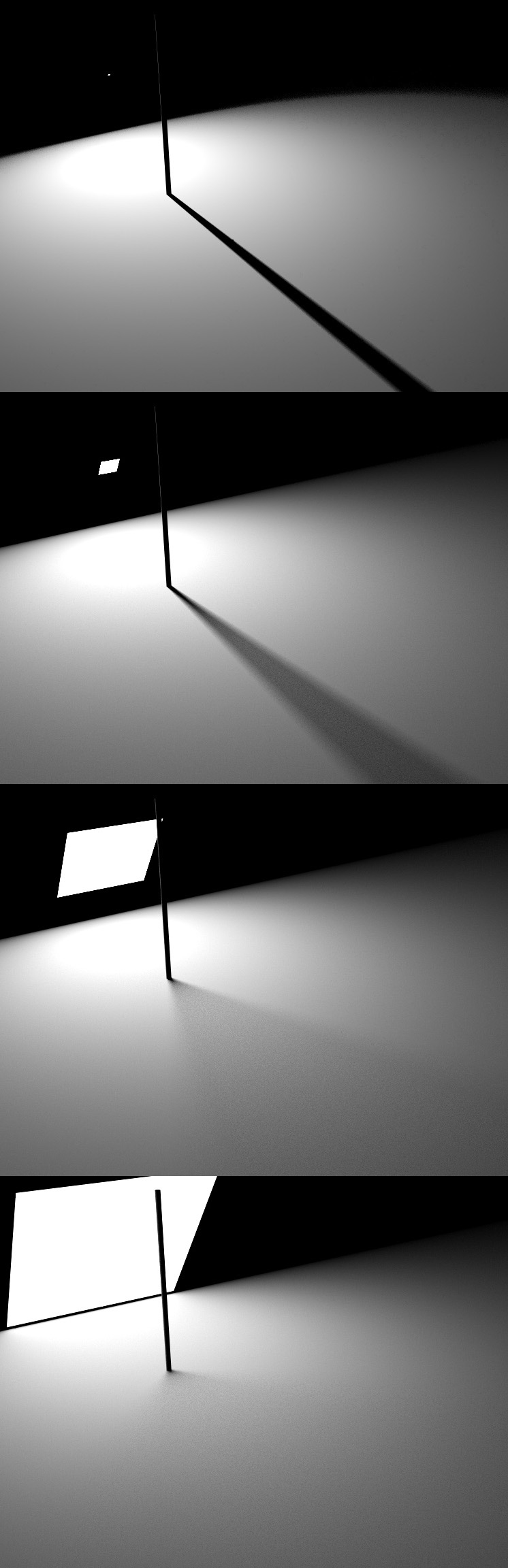 A parità di illuminazione una fonte luminosa più grande creerà ombre più sfumate e quindi necessiterà di più suddivisioni.