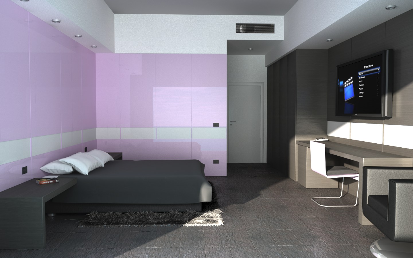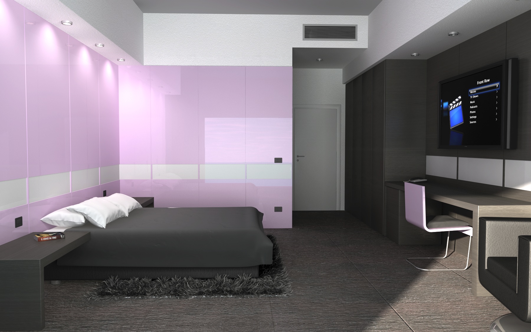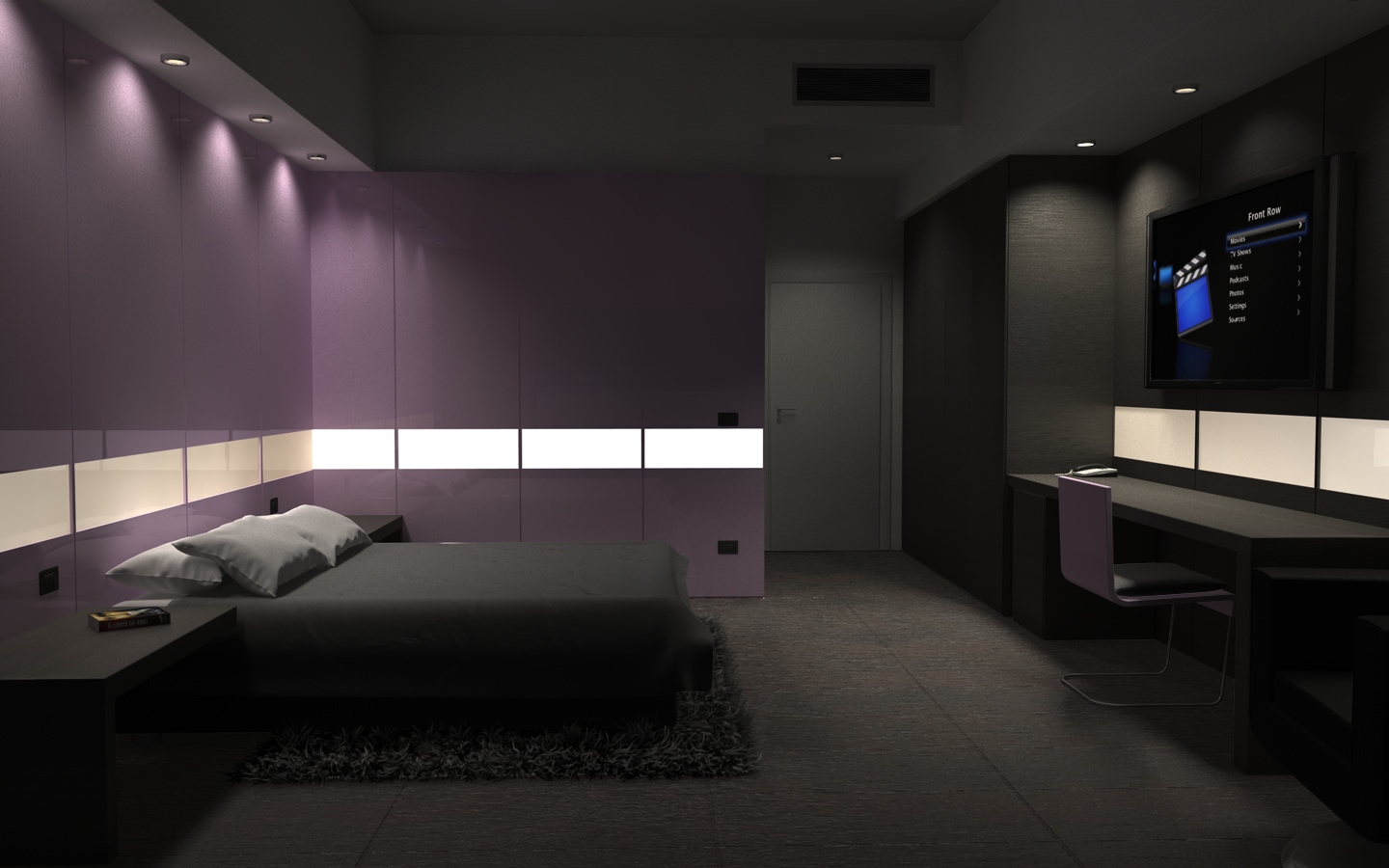 il notturno mi piace molto,il diurno insomma.......dovresti riguardare le tex ,hai acceso la luce dei faretti nella parete lilla,e hai fatto bene ma dovevi far si che quella parete rimanesse in scuro che ne so con una tenda alla finestra.i muri hanno troppa bump.L'immagine secondo mè risulta ancora piatta,scusa ma questo è un mio parere 8-)