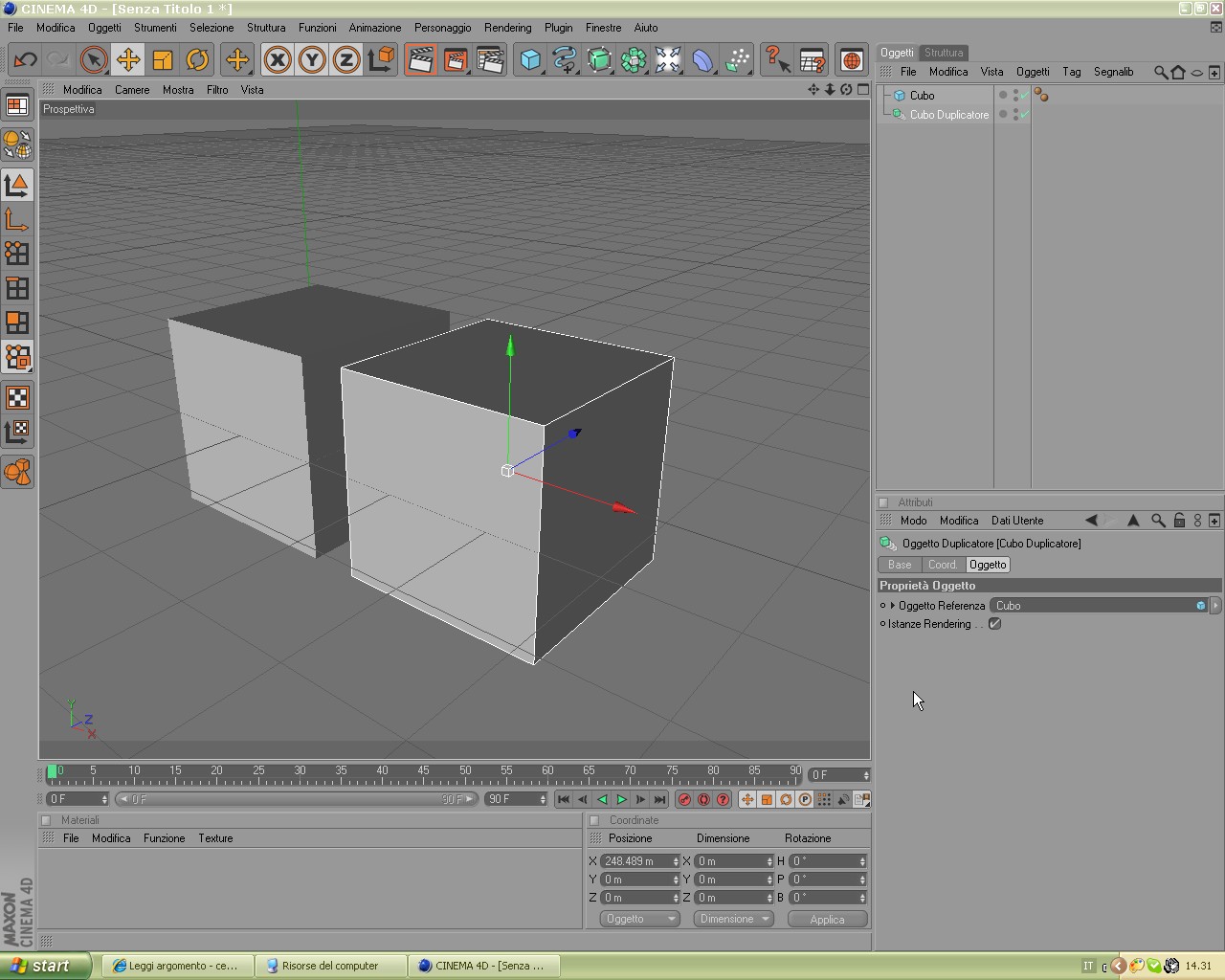 inserisco il mio primo modello di albero 3d dopodichè con lo strumento "duplicatore" lo duplico una prima volta, selezionando l'oggetto duplicatore attivo istanze di rendering come ho postato prima nell'esempio del cubo