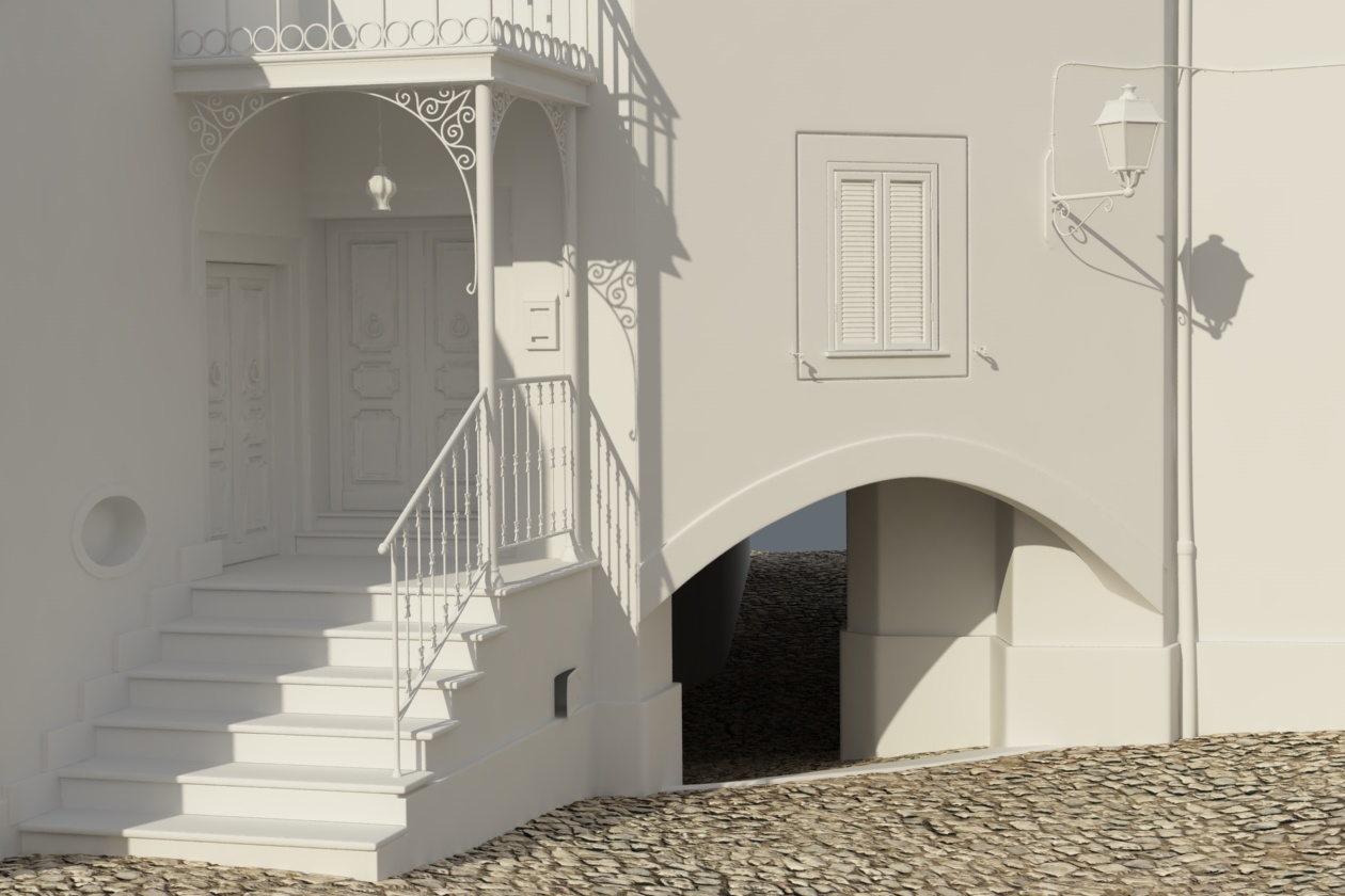 Ho aggiunto alcuni particolari alla scena ed ho modificato leggermente la struttura delle entrate a sinistra.