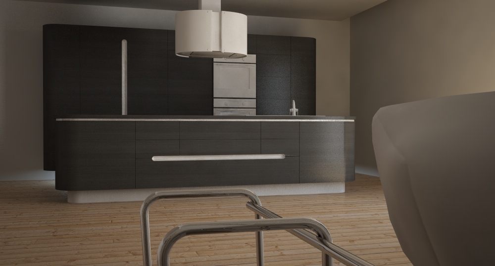 Allora, dall'ultima volta che ho postato, mi son messo alla ricerca di una cucina ad isola, ed essendo tutte scadenti, ho deciso di modellarmela da me. Allora l'ho preso come un esercizio da fare, dato che di modellazione in cinema4d ne so davvero poco. Posso dire davvero che avvolte rimboccarsi le maniche e modellarsi da se alcuni oggetti, non è per niente sacrificante. In questo mio "esercizio" ho imparato davvero molto, ho appreso come ci sono diverse strade per arrivare ad un unico obiettivo. Ho appreso ancor di più l'uso delle booleane che mi è servito per ricreare le fughe dei cassetti ecc.