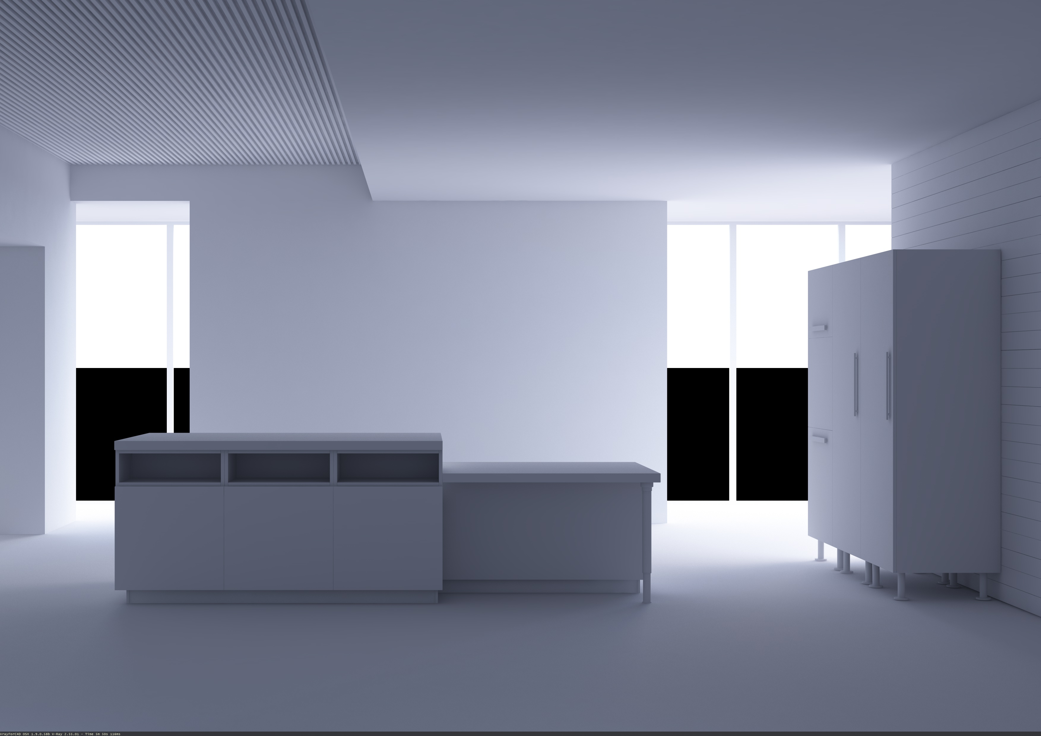 Un'altra prova con hdr e aggiunta di qualche specchiata senza diffuse.sempre da rivedere coma la ripetizione della tex sulle ante delle basi,ma sono in via di definizione,quando saranno ok si sposteranno per ogni sportello.Quello che volevo vedere era discorso luce.