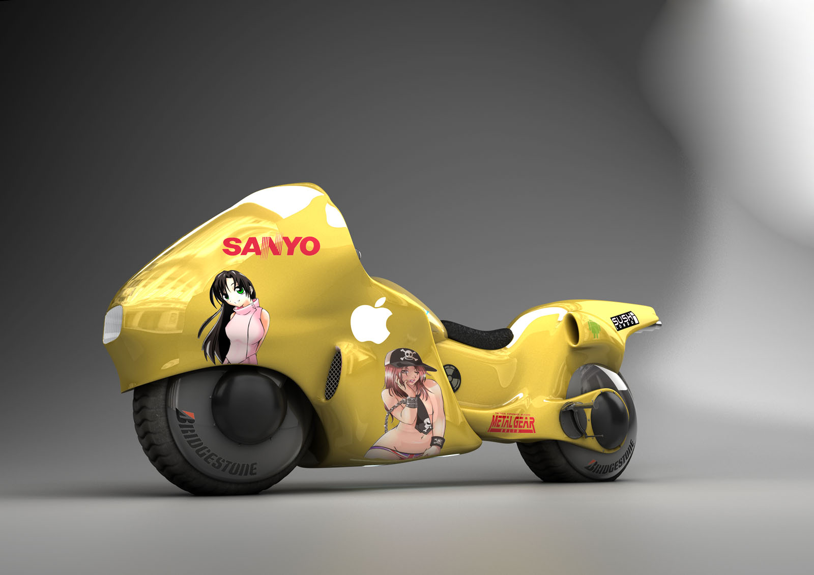 Ieri finalmente sono riuscito a finire il mio modello di moto futuristica, grazie ai provvidenziali suggerimenti di Renxo, 62vampiro, Kino e Pierluigi (NB, mi piaceva l'idea di mettere dei fari doppi dall'aspetto un po' piu' aggressivo, ma non me la son sentita di togliere i disegnini manga che gli danno l'aspetto fumettoso e ironico che cercavo)...