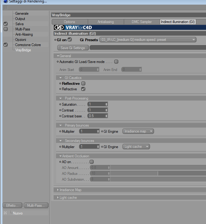 Posta i parametri della GI e dell' AA, e color mapping.