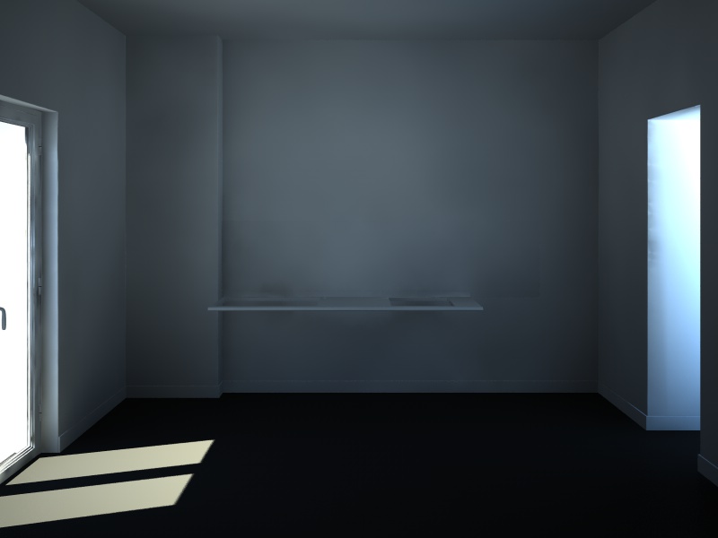 la portafinestra a sx ha i vetri che fanno ombra, o li disattivi o gli applichi un tag vraycompositing e togli la spunta da cast shadows
