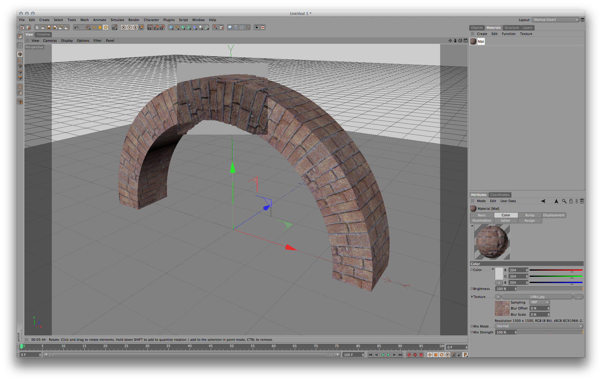 Prendi invece una primitiva di C4D, il rettangolo, e ti crei tutti gli archi che vuoi e le mappatura? Fantastica! Usi una mappa 'normale' cioè un ricorso di mattoni e 'lui' te la mette, bella bella, al posto giusto...
