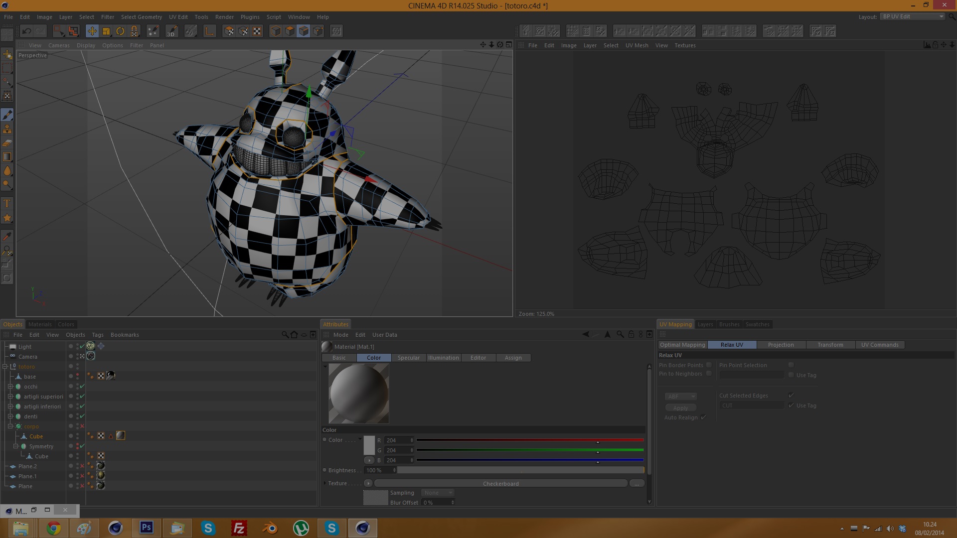 beh, in realtà per l'interno dell'orecchio ci pensavo già in fase di modellazione, per vedere se scavare o meno l'orecchio...poi guardavo il cartone e vedevo che da tutte le inquadrature aveva quella forma "conica"...così avevo deciso di non scavarle...Farei attenzione alle orecchie dove una parte la dipingerei di brigio più chiaro o addirittura rosa come fosse l'interno orecchio