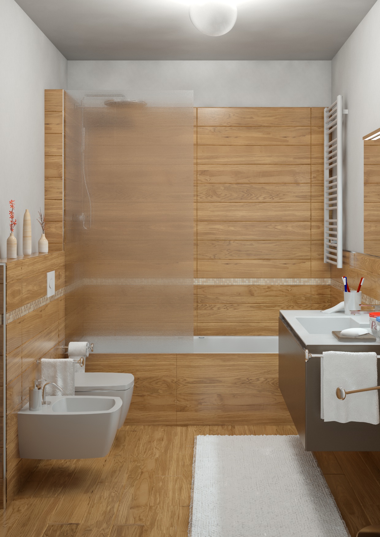 riciricca wrote:Ciao, secondo me è migliorato molto come luce e come resa dei materiali, manca un po' di accuratezza nei dettagli: tutto quello che è sul lavandino è poco dettagliato, spazzolini, sapone, barattoli... e non lo trovo molto in linea con la cura che ci stai mettendo; al bidet manca il miscelatore forse; la luce sopra lo specchio non mi convince, mi sembra un po' piccola soprattutto, considera che li deve illuminare il volto; mi sembra che il bump della greca sia invertito; per quanto riguarda il mobile del lavabo non so se hai trovato un modello già fatto o lo hai copiato, ma così a occhio dividerei il cassetto in due (orizzontalmente); il tappeto ha qualcosa di strano sul bordo (comunque non mi piace, scusa :) ).