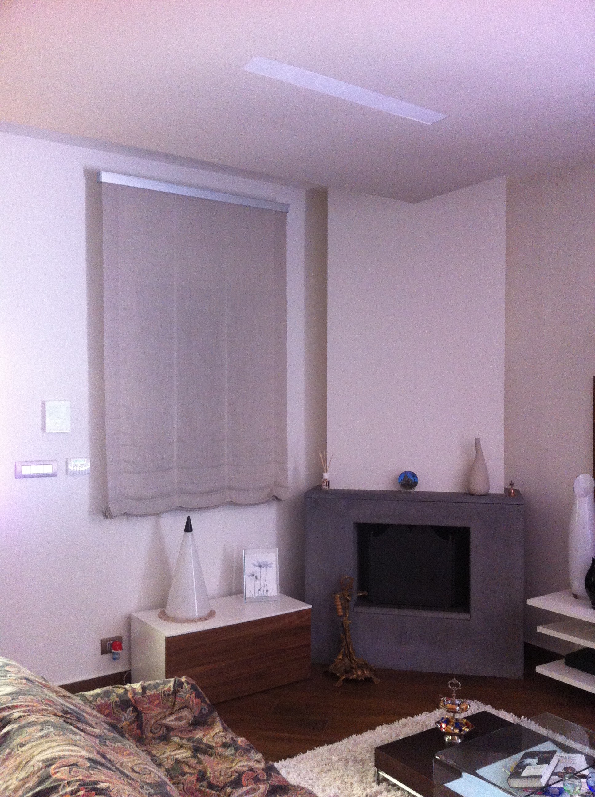 A proposito del camino invece devo dire che è proprio così. Fondamentalmente è/era un blocco rivestito di mattoni rossi poi a loro volta fatti rivestire con lastre di pietra lavica porosa e liscia lasciando libero il foro centrale per la legna. In effetti però mi sto accorgendo che non mi sono accorto che la fuga in alto che fa notare la lastra superiore è scivolata alla base. E non ho fatto il blocco di rivestimento alla base del foro. Sistemerò anche questo.