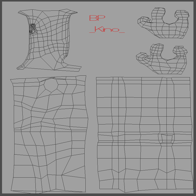 ps: cmq avevo scordato all'inizio di questo wip che avevo intenzione di fare un modello con appositamente pochi poligoni, un pò come i quelli dei videogiochi..anche per questo non ho voluto utilizzare hypernurbs!..e cmq il suo aspetto un pò "intagliato" non mi dispiace! :x