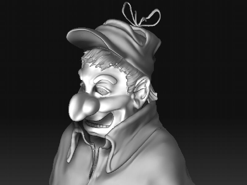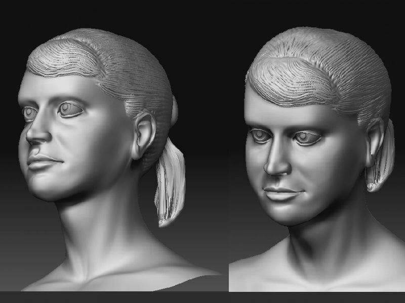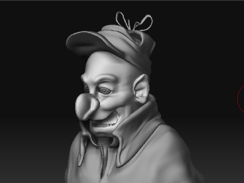 In quest'ultimo personaggio forse dovresti rivelare un po' di narici anche nella versione lowpoly, così da non avere i difetti che risultano dopo la scolpitura, ... quano vai ad allontanare troppo vertici inizialmente vicini il displacement risulta più approsimativo in qul punto rispetto ad altri dove la trama è più fitta.