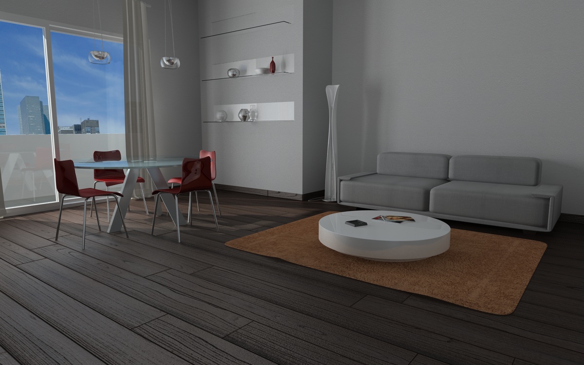 il pavimento invece nn mi convince, quelle venature così marcate ... nn sembrano reali, una prova con qualcos'altro di diverso non la vedo male. Oppure potresti provare a renderlo meno ruvido (o + omogeneo....), un po' riflettente con un bel po' di dispersione.