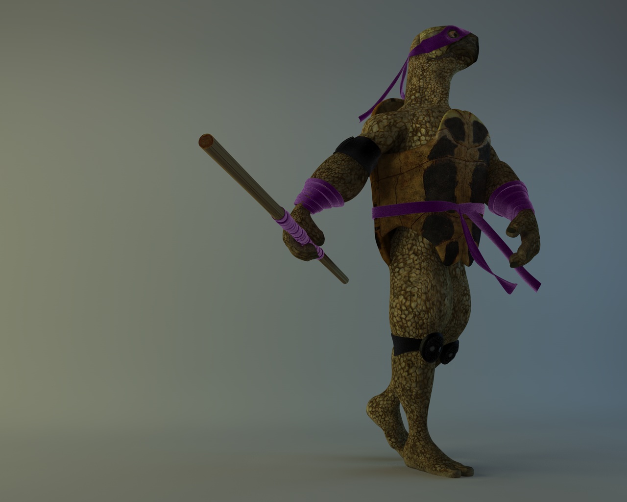 AHAHAHHAAHHAHAAHH.....mi sono accorto che il donatello degli ultimi render non aveva un paragomito. aggiungo quindi l'immagine completa ( ritoccata un po' con photoshop perchè, come mi è stato giustamente fatto notare, era veramente troppo scura )