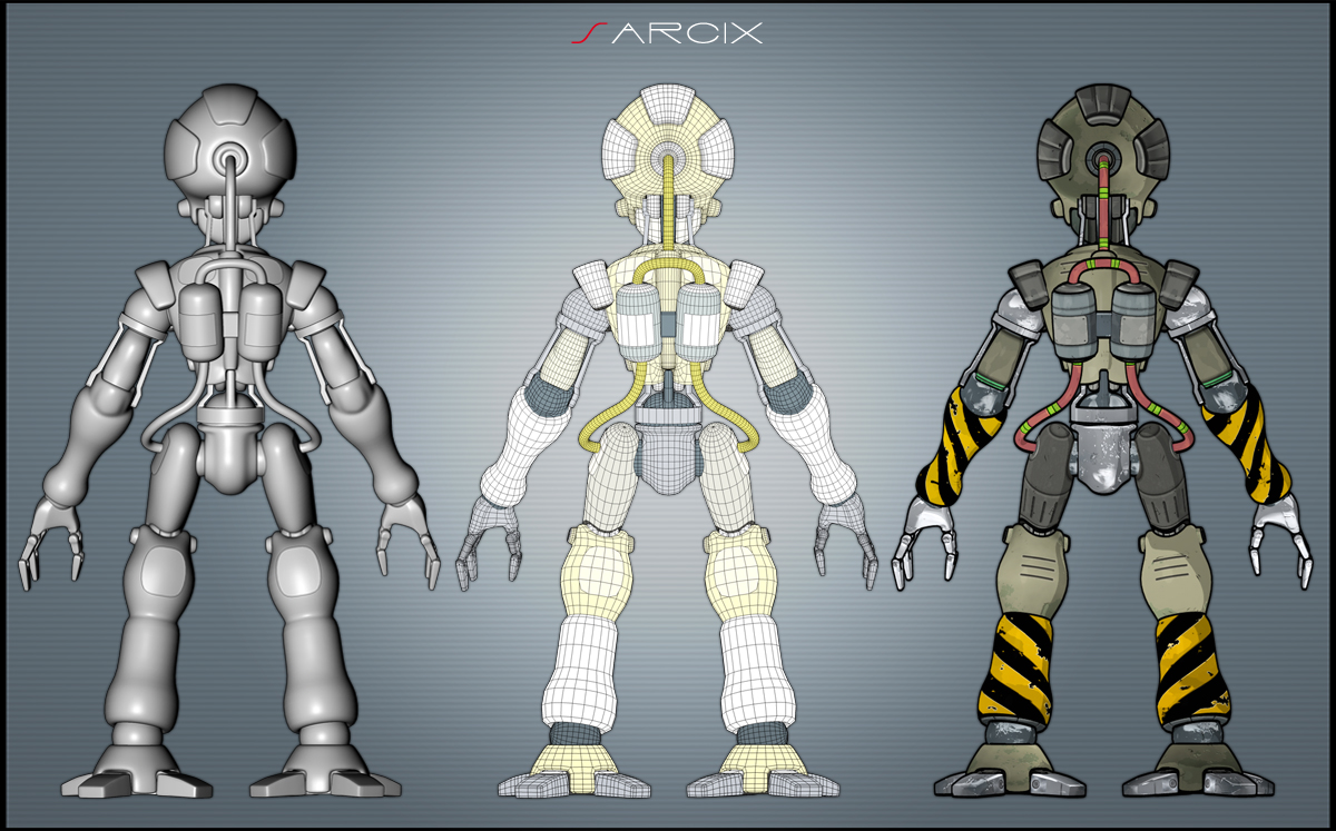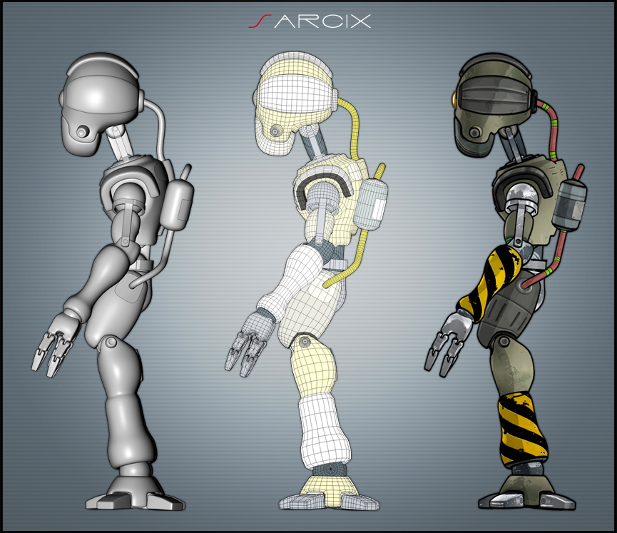 Quella precedente era per prova ( non era fatta da me ), poi ho aggiunto delle capsule sulla schiena collegate alle cosce ( i tubi ne seguono il movimento ), e qualche particolare qua e là.
