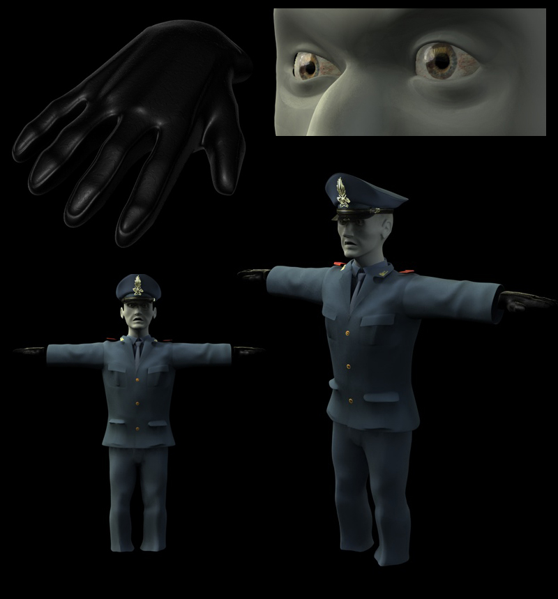 Ora il finanziere è vestito del tutto, nonostante sia ancora intento in alcune prove, come quella per le pieghe, ... la giacca ha una mappa displacement, invece con i pantaloni, anche dopo aver visto in rete cose favolose sul panneggio poligonale,(http://lnx.eklettica.com/coppermine/dis ... t=0&pos=17), sto cercando di lavorare sul modello direttamente, ma con risultati che lasciano ancora aperta la porta del displacement.