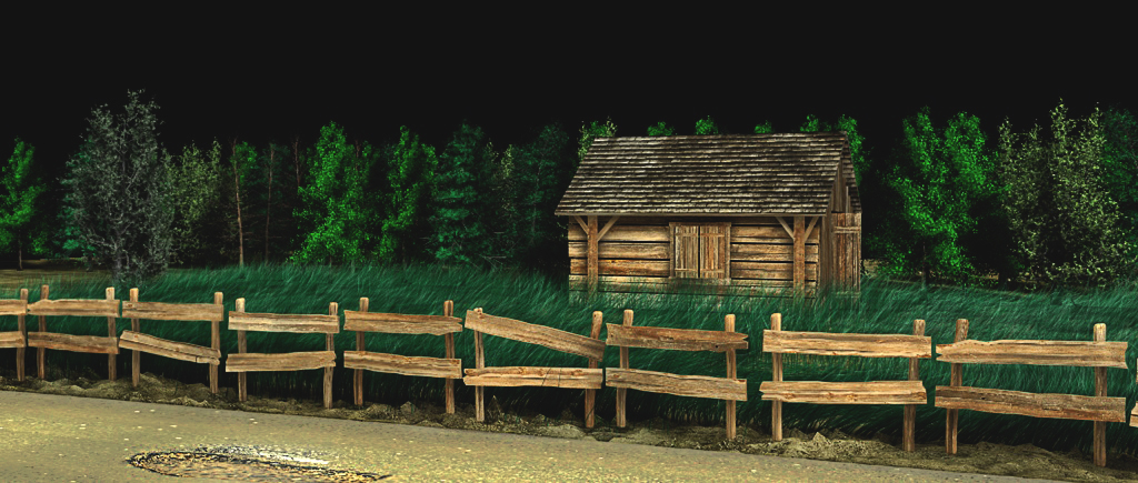 Per quanto riguarda la mia parte, non ho ancora corretto l'erba, oltre che variarla maggiormente pensavo anche di aggiungere dei ciuffi più corti sotto la staccionata, sia per cammuffare la base dei fili lunghi che per dare più movimento.