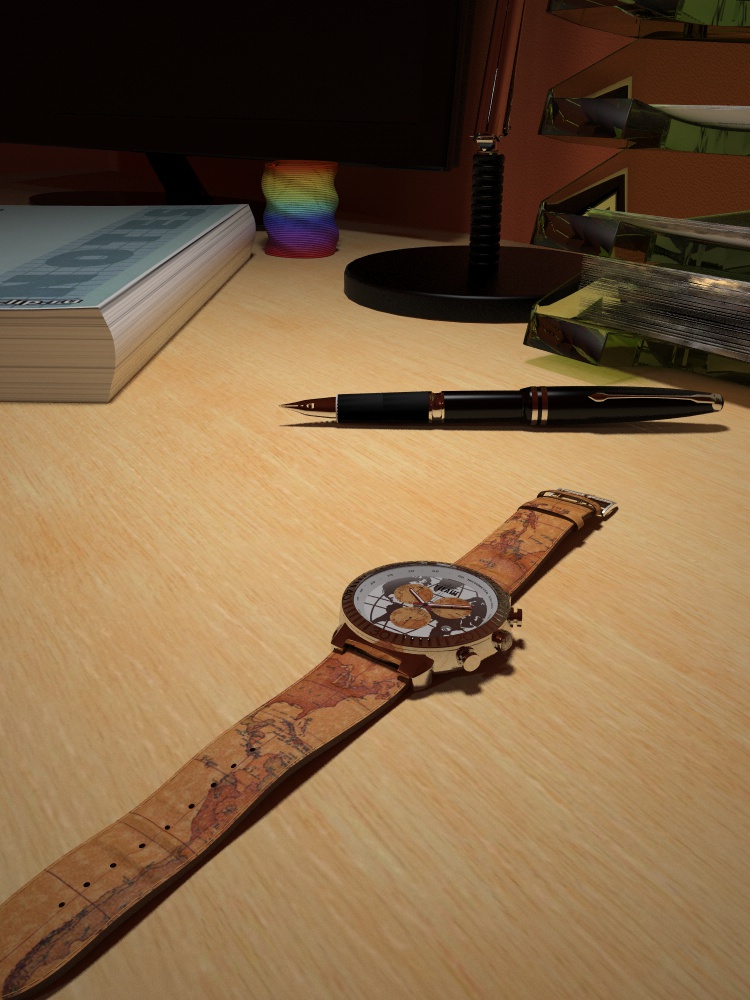la texture del piano della scrivania non è proprio un capolavoro e l'orologio mi sembra leggermente sollevato da quest'ultimo.