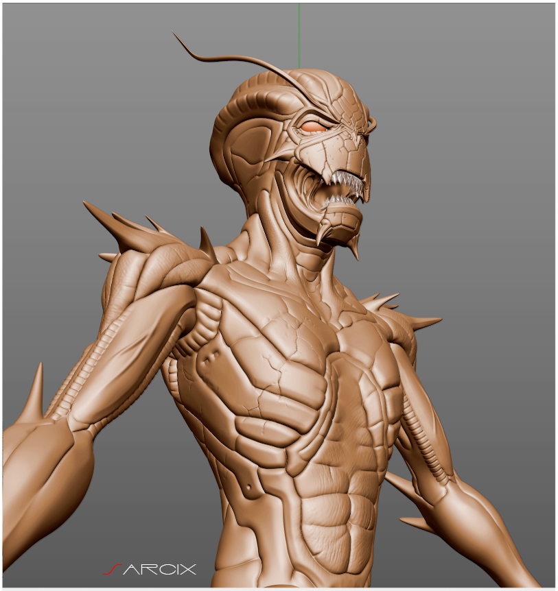 Ma le protuberanze appuntite delle spalle e le antenne sono pezzi di mesh a parte oppure hai ricavato tutto da un unico blocco?