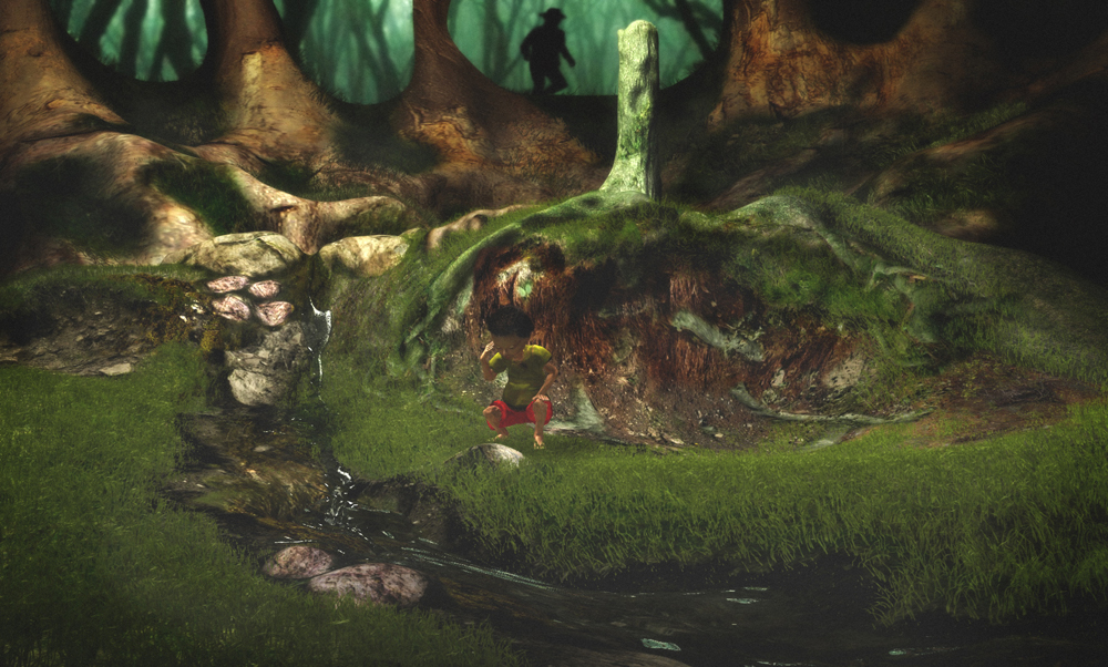 Per ora ho due strade che potrei prendere ... in un caso la figura che fugge è il padre o tutore del bambino che sta scappando dopo averlo abbandonato nel bosco, ... il motivo è un'imminente evento catastrofico generato dal pargolo che è in evidente stato di concentrazione (non pensate a momenti intimi :nono ) ... nel secondo caso la vicenda è più "demenziale" ... due miei amici sono da poco genitori e, quando vado a trovarli, spesso ci divertiamo a leggere certi ridicoli articoli di riviste per genitori con figli piccoli ... roba da sbellicarsi tra madri in conflitto tra tacchi e sandali per girare con il passeggino e consigli ai padri per creare un rapporto con il figlio ... in quest'ultimo caso c'era un esempio di gioco che mi ha fatto cadere le braccia: durante una scampagnata potreste inoltrarvi nel bosco, scegliere un albero e guardarlo attentamente, poi vi allontanate e lasciate che vostro figlio ritrovi l'albero di poco prima ... allo scopo di abituarlo all'osservazione, etc. ... nella mia vicenda il padre esagera e abbandona il bambino nelle profondità di una foresta dalla quale probabilmente nemmeno lui sarà in grado di uscire.