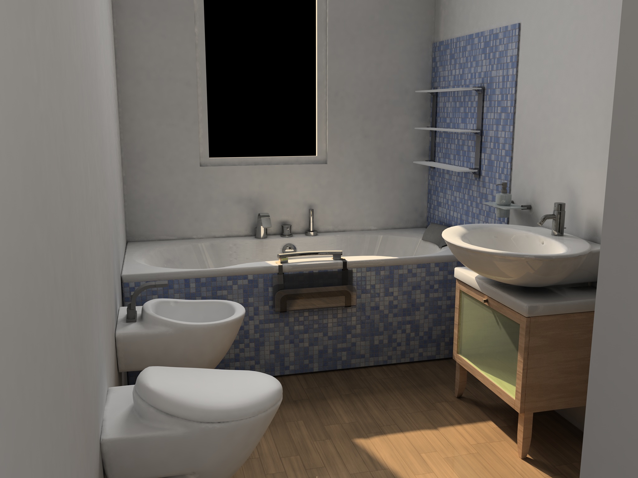 per le piastrelle ho copiato il materiale di quelle della vasca(rilievo al 100%), texture piedini ruotata e per i rubinetti fà nulla tanto non è il mio bagno... :D