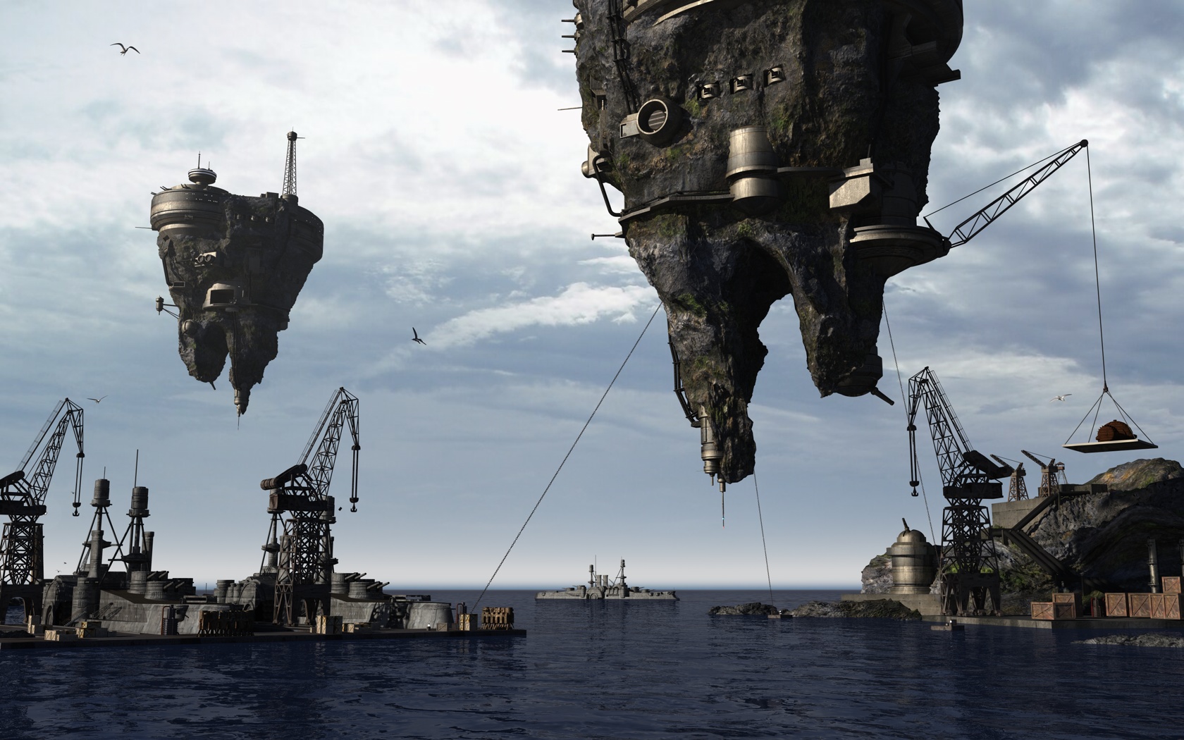 Le fortezze volanti sono fatte bene, ma sarebbero da dettagliare con delle buone tex, diversificando le strutture dalla base rocciosa.
