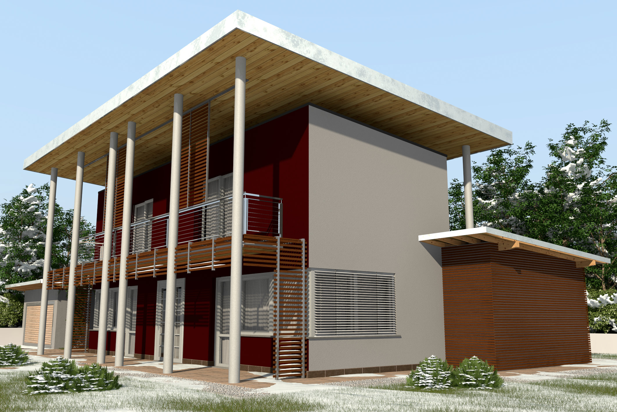 per quanto riguarda il render, nella mia semignoranza mi azzardo a commentare affermando che mi piace molto la versione "invernale"...se posso permettermi, mi sembra solo un pelino piatto il muro a destra, quello grigio....