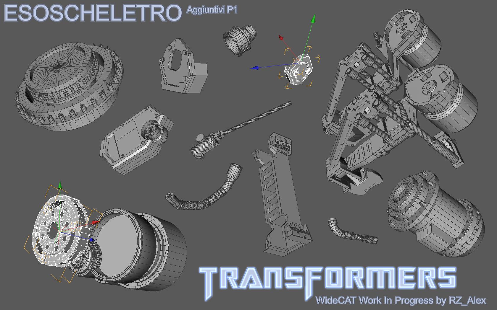 Prima di riprendere in mano l'esoscheletro mostrato nel filmato che comunque era elementare, mi sono messo a modellare un po' di pezzi vari da mettere a vista nel WideCAT, che andranno poi ad integrarsi con i pezzi del Cat825. Prossimo passaggio esoscheletro!