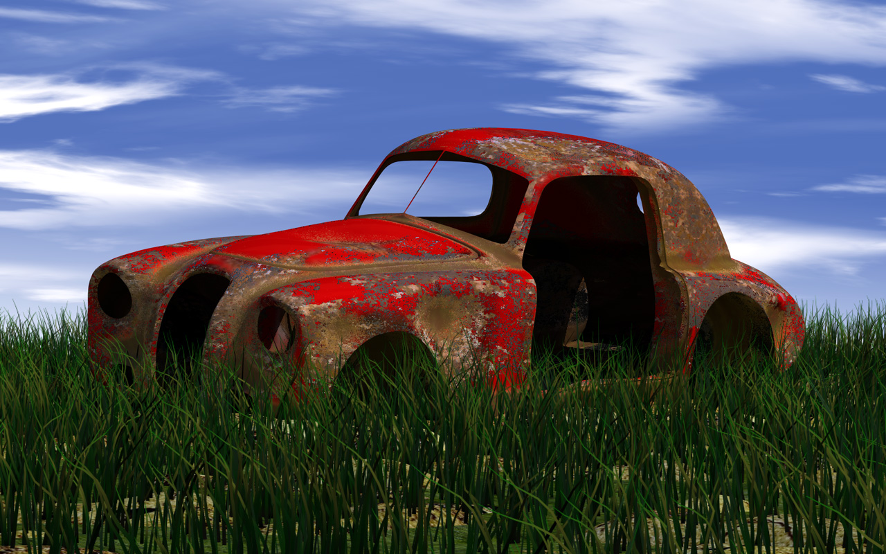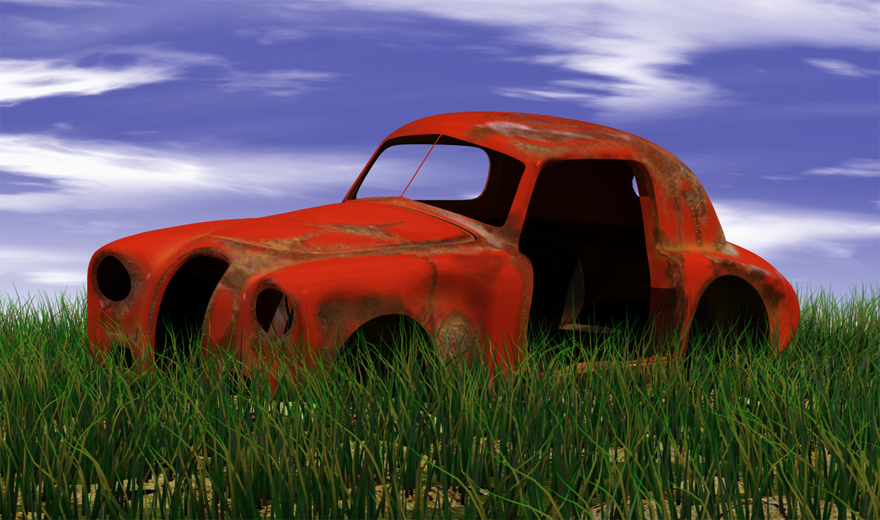 e bravo Marco, procedi procedi. Ho riesumato la carcassa arruginita, stavolta ho provato a textutizzare direttamente sul modello con bodypaint.