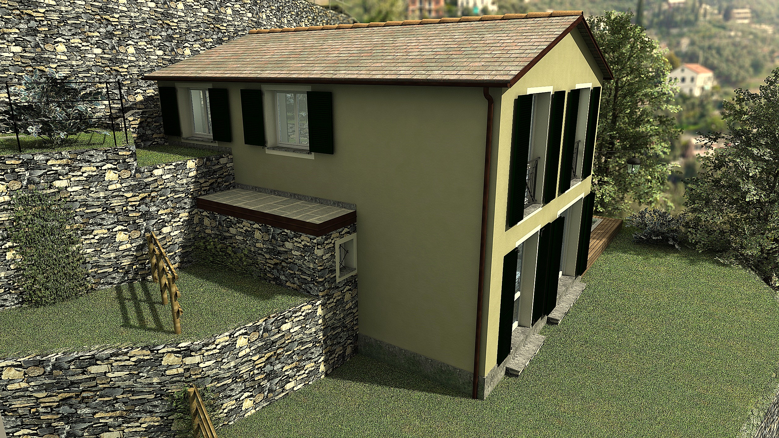 nei muri a secco ho tolto il displacement ed accentuato il bump.