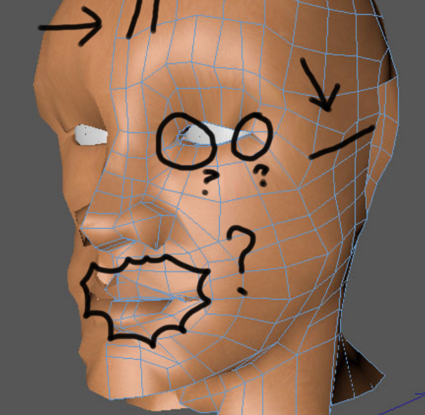 prova a diminuire anche il numero complessivo dei poligoni, sono un po troppi e diventa difficile avendone cosi tanti a modellare per bene il viso che vuoi, perchè spostando un punto si sposta solo una piccola porzione del viso, per cui ti vengono i bozzi tipici dei mostri