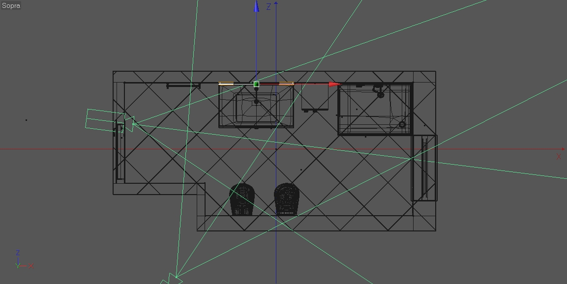 Ovviamente ho strutturato il modello in modo tale da poter renderizzare anche posizionando la camera fuori dal modello ed escludendo alcune pareti dalla renderizzazione, ma non mi convince lo stesso, dovrei comunque dare troppa abberrazione prospettica alla camera per prendere un po' più di spazio, ma deformerebbe troppo gli oggetti