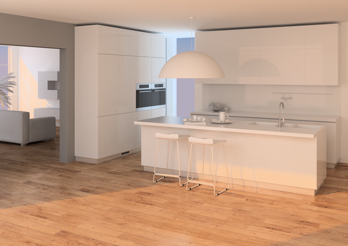 Nella vista generale notturna, sia in cucina che in soggiorno, oltre al colore avrei variato anche l'inclinazione della luce rispetto alla vista diurna. Inoltre, considerando lo sfondo notturno utilizzato, avrei mantenuto il soggiorno molto più buio, che al momento risulta addirittura più luminoso della cucina.