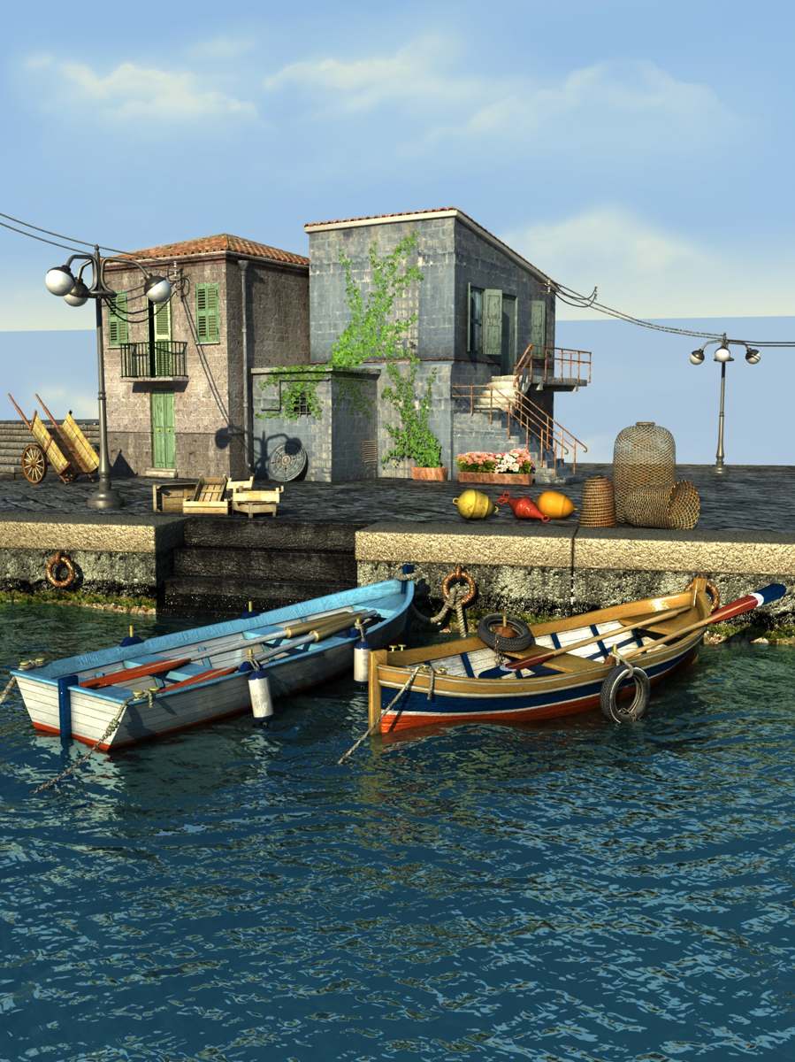 per il colore degli edifici prenderei spunto da quelli delle Cinque Terre... 8-)