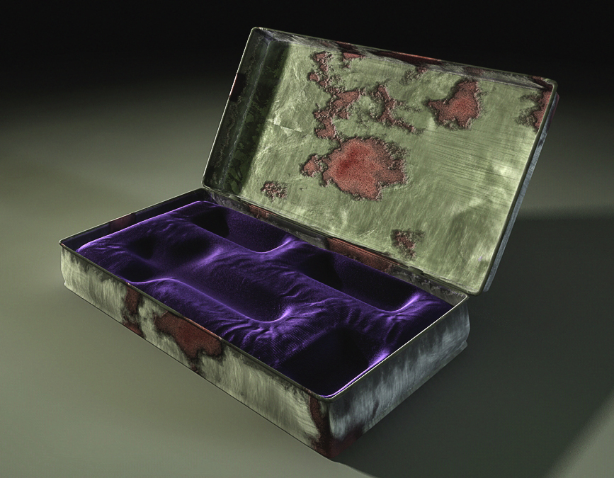 L'altro problema riguarda la resa di normal e bump sul lato della scatoletta, che non appare come sul coperchio ma sembra piatto, disegnato, ... credo sia una coincidenza che riguarda l'incidenza della luce, anche se è strano considerando che è piazzata proprio davanti.