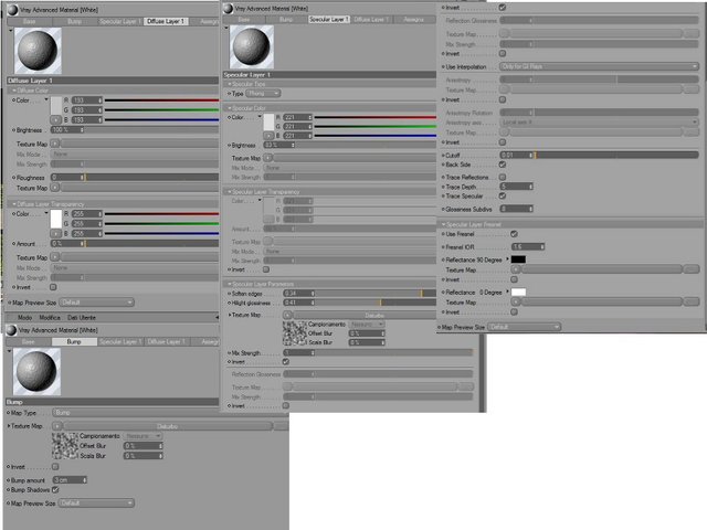 per lo specular: io metterei un WARD, secondo me il gesso è opaco, poi dipende da che finitura vuoi dare.