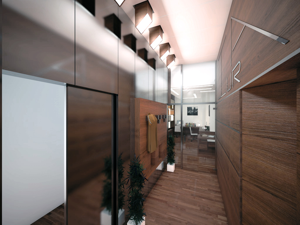 4) sulla parte sinistra e' un satinato, ho voluto metterlo per dare un leggero effetto "specchiato" che ampliasse un po' il volume stretto e lungo del corridoio.